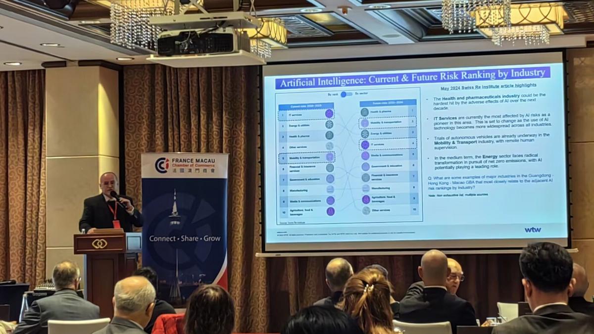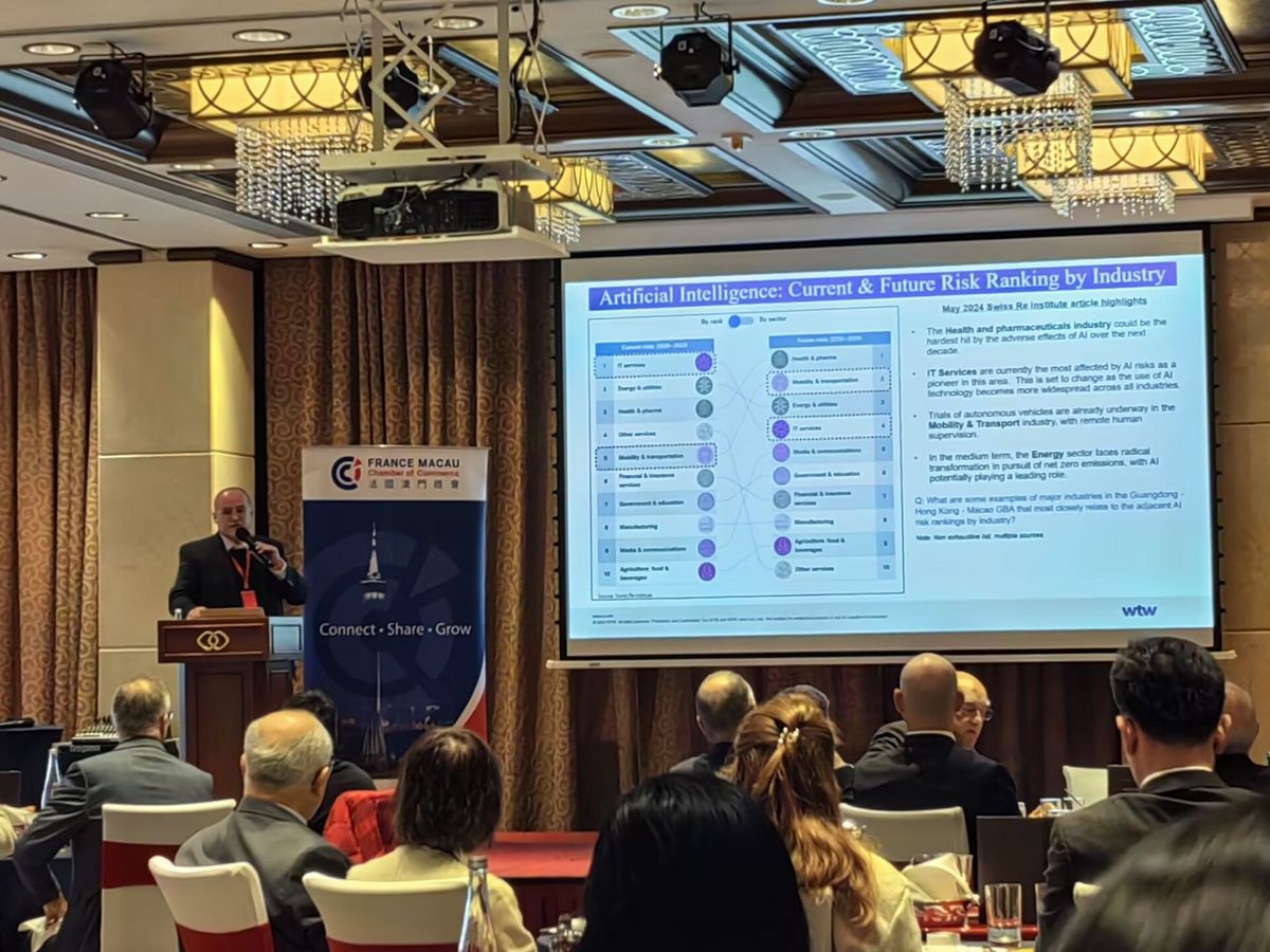 On February 27th, FMCC had the pleasure of hosting Mr. Vincent Mossfield, Regional Director of the Liability Risk Practice at WTW, Asia, at The FMCC Breakfast Talk Rendez-Vous. Mr. Mossfield delivered an insightful presentation on the emerging liability risks associated with artificial intelligence, emphasizing the importance of understanding these challenges for businesses in the Greater Bay Area. He covered key topics such as operational liability risks, current and future risk ranking by industry, and proactive strategies to safeguard businesses against potential legal, commercial, and personal liabilities.