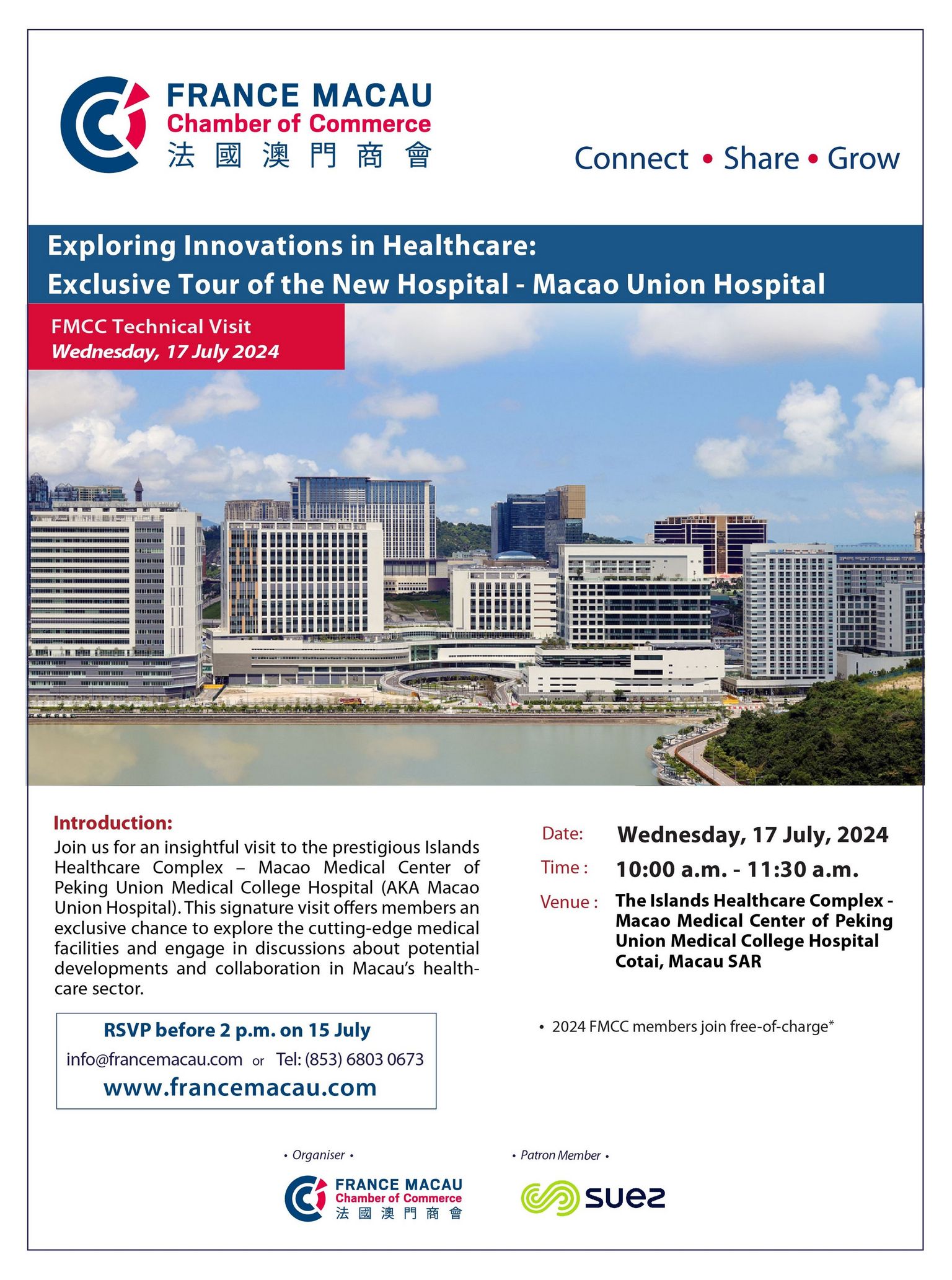 Join us for an insightful visit to the prestigious Islands Healthcare Complex – Macao Medical Center of Peking Union Medical College Hospital (AKA Macao Union Hospital). This signature visit offers members an exclusive chance to explore the cutting-edge medical facilities and engage in discussions about potential developments and collaboration in Macau’s healthcare sector.