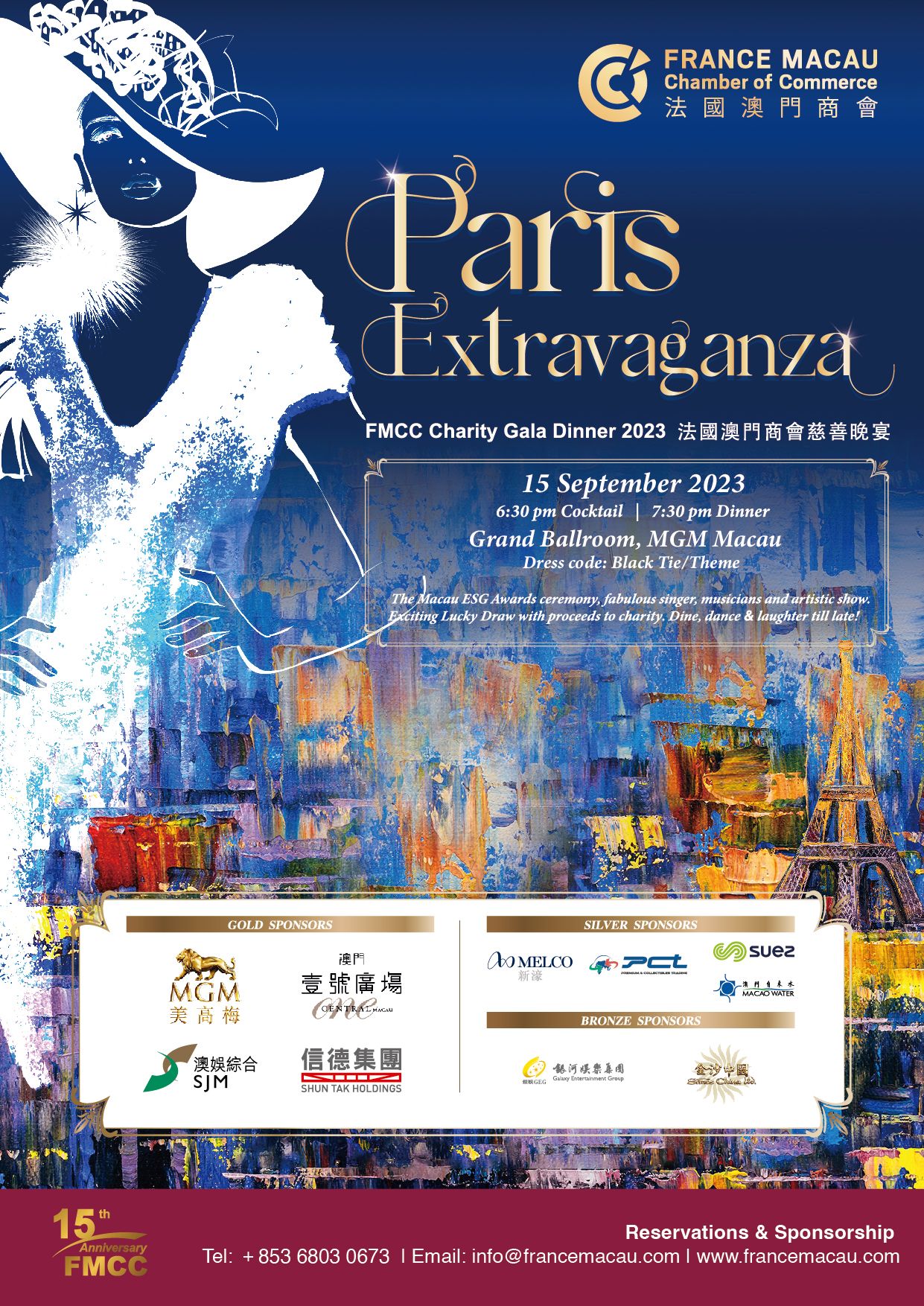 The France Macau Chamber of Commerce proudly present its upcoming Charity Gala Dinner 2023, themed “Paris Extravaganza”, which will be held at the Grand Ballroom of MGM Macau, on Friday, September 15th, 2023.