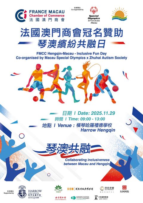 This yearβs Hengqin-Macau Inclusive Fun Day, supported by the France Macau Chamber of Commerce (FMCC), aims to foster community integration for neurodiverse individuals and their families. The event will feature friendly athletic competitions and cultural activities, promoting mutual learning and cross-border collaboration between Macau and Zhuhai. It is co-organized by Macau special Olympic and Zhuhai Autism Society.