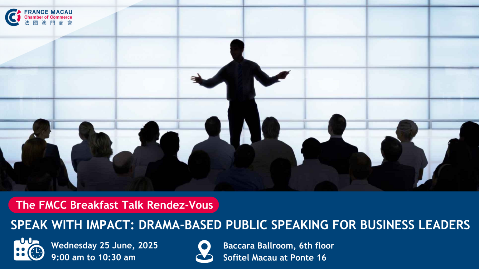 Join us for an immersive breakfast session with Mr. Howard Paley, Hong Kong-based actor and public speaking coach, as he reveals techniques that can transform your professional presence. Drawing from his 30+ years of international experience in theater and corporate training, Howard will demonstrate practical methods to command attention and convey messages with clarity - whether in boardrooms, pitches, or high-stakes negotiations. Discover how voice modulation, body language, and storytelling principles can help you communicate with confidence and authenticity in today's competitive business landscape. Don't miss this unique opportunity to elevate your communication skills and executive presence through efficient use of the tools of communication we all possess.